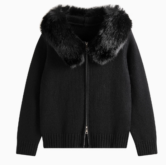 2025 New Style Fashion Hooded Fur Collar Zipper Loose Sweater ED0544