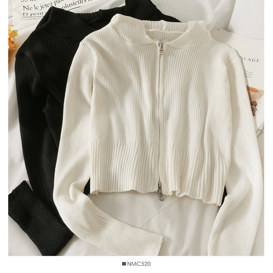 Personalized double zipper tight vertical stripe long sleeve knit 1777