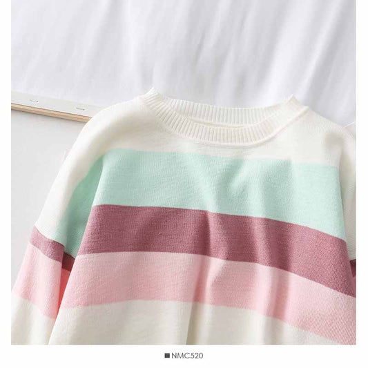 Sweater women's Phnom Penh wave edge stripe single breasted 1854