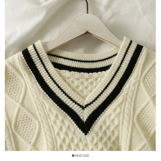 Korean Vintage V-neck single breasted long sleeved sweater for women 1782