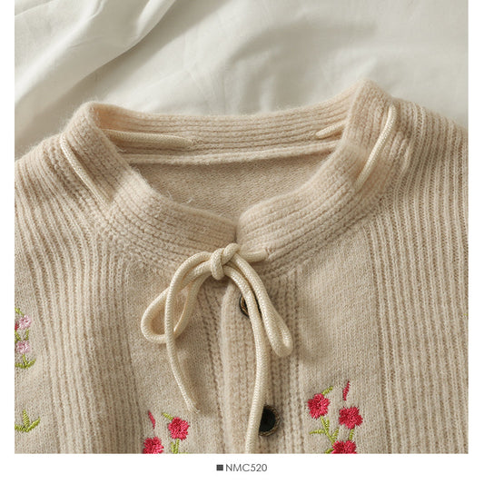 Vintage embroidered short cardigan single breasted long sleeved sweater 1811