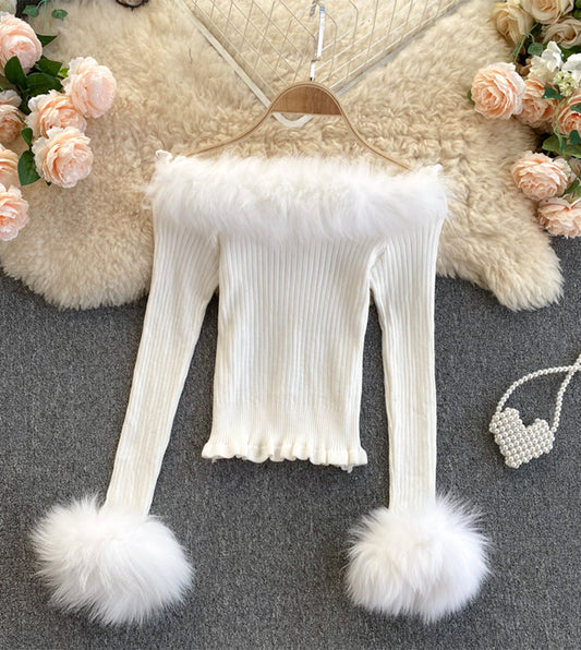 Cute cut-out long-sleeved sweater off shoulder sweater 038