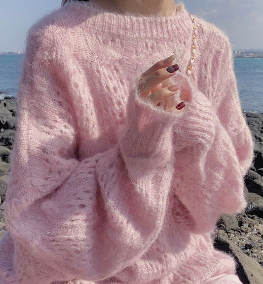 Sweater loose round neck openwork sweater 109