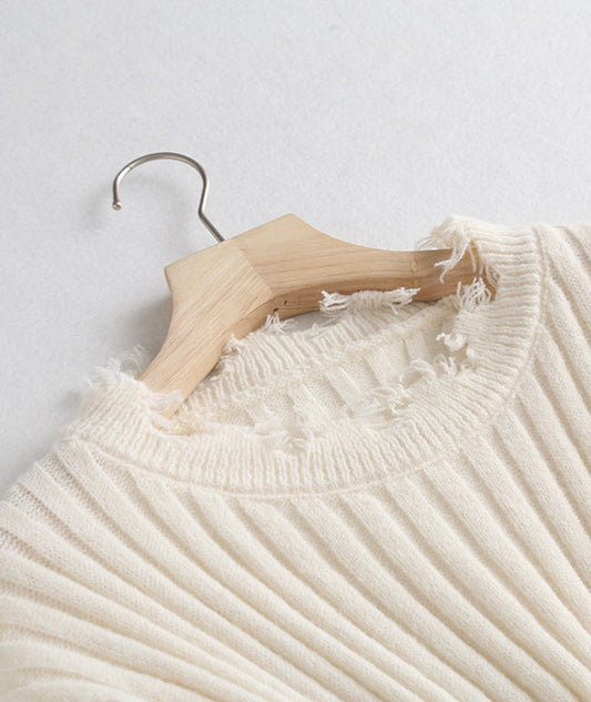 White fringed sweater white long-sleeved sweater top 110
