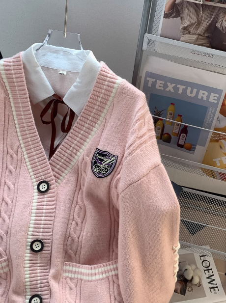 Preppy Pink V-Neck Cardigan Sweater ED0182
