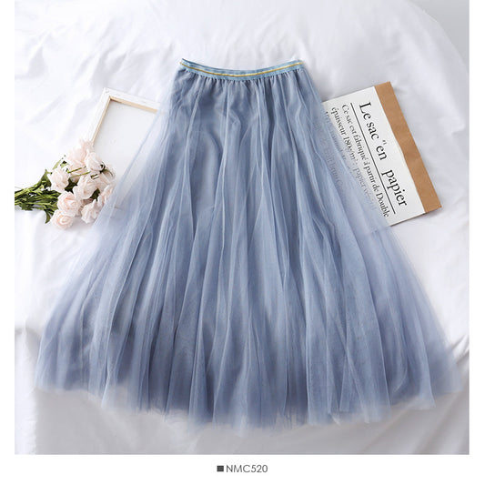Bow decorative gradient high waist medium length yarn skirt women 2510