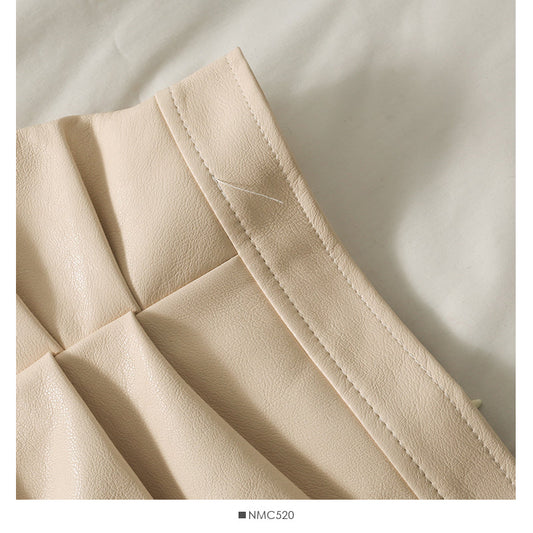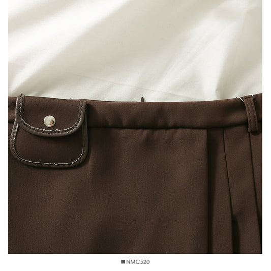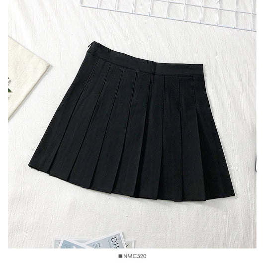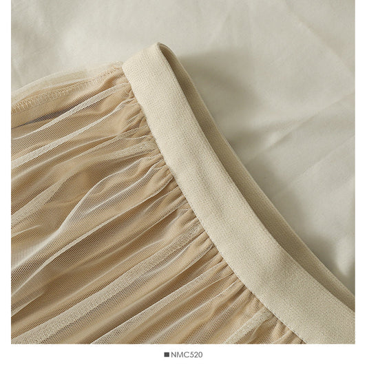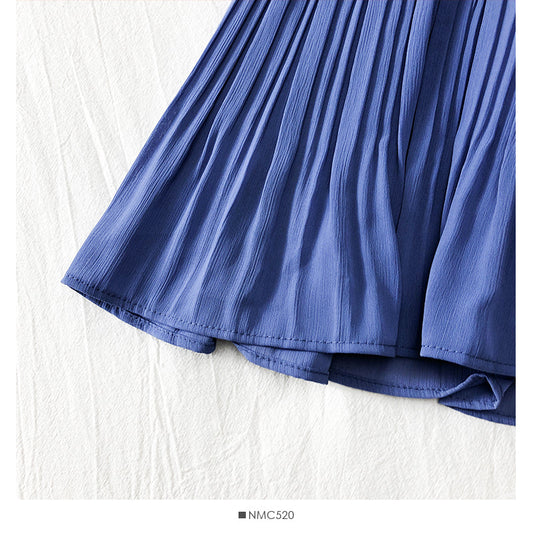 Pleated stitched A-line skirt women's new solid medium length skirt 2506