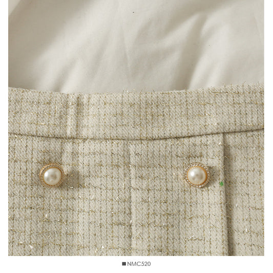 Hong Kong style retro bright silk Plaid tweed high waist A-shaped skirt 2527