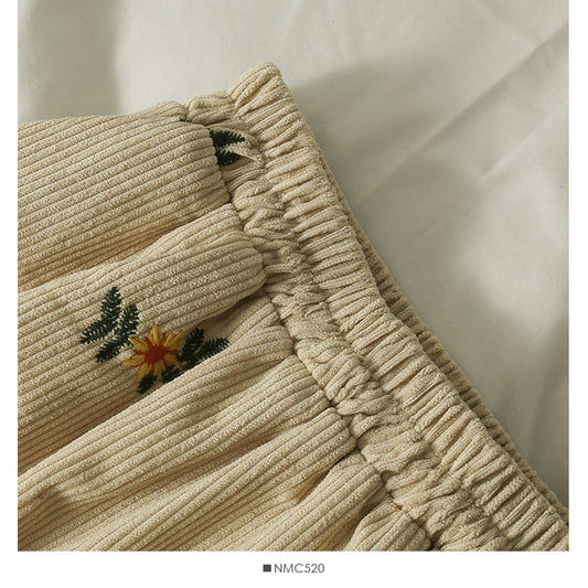 Retro embroidered elastic waist thin medium length A-line skirt 2516