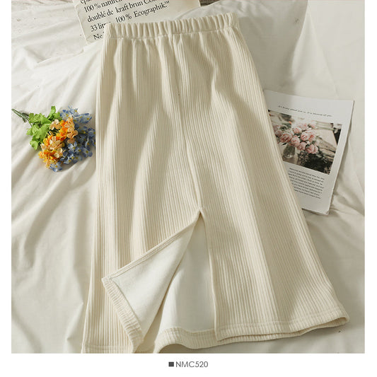 Hong Kong style retro vertical stripe elastic waist thin split one-step skirt 2519