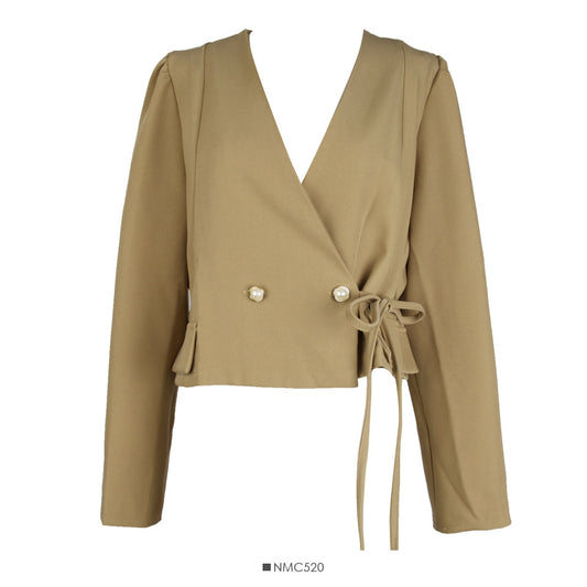 French minority bowknot drawstring lace up blouse women's coat 2093