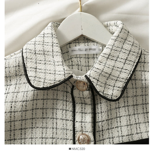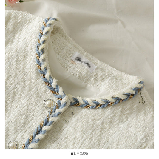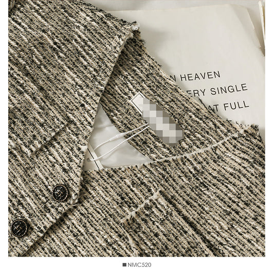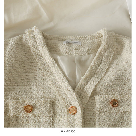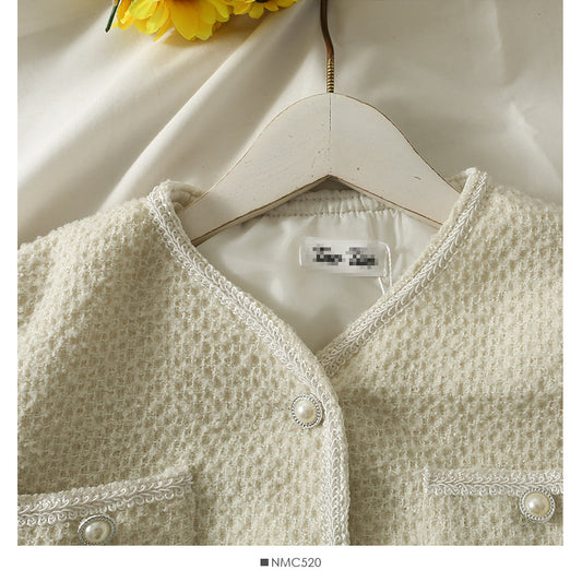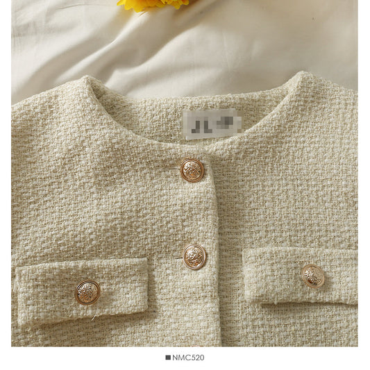 Hong Kong Style Vintage tweed round neck single breasted cardigan small coat 2108