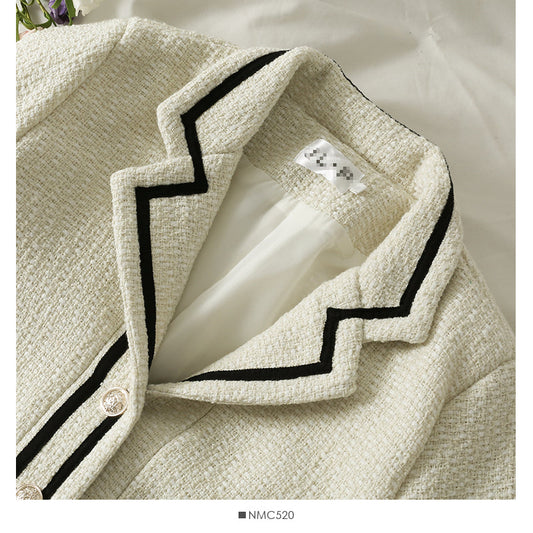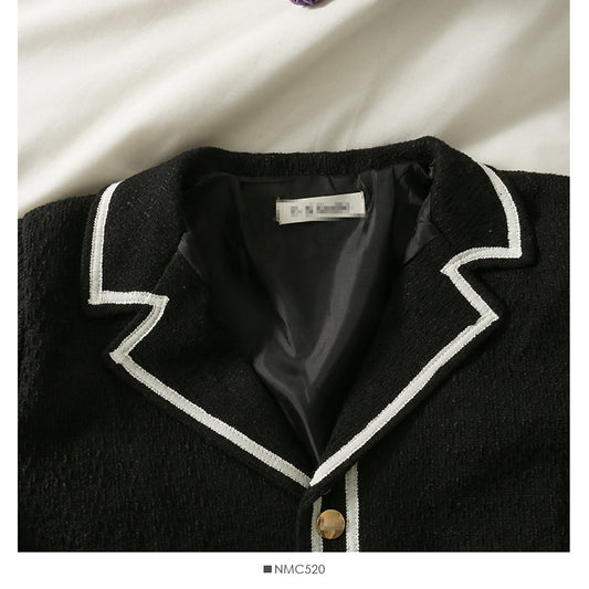 Striped tweed Lapel Blazer women's versatile single breasted long sleeved coat 2094