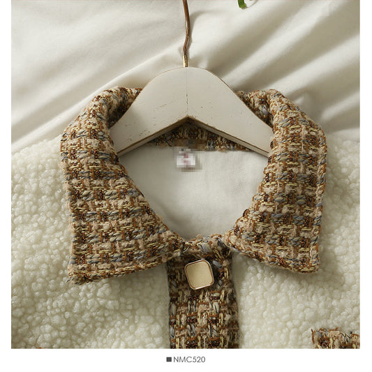 Splicing wooden ear edge doll neck long sleeve small coat for women 2113