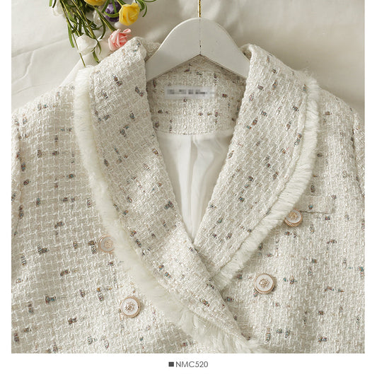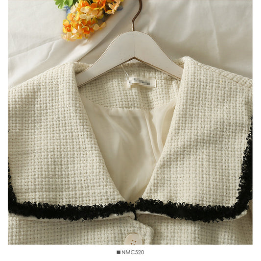 Hong Kong style retro tassels woolen baby collar tweed short shirt style coat women 2119