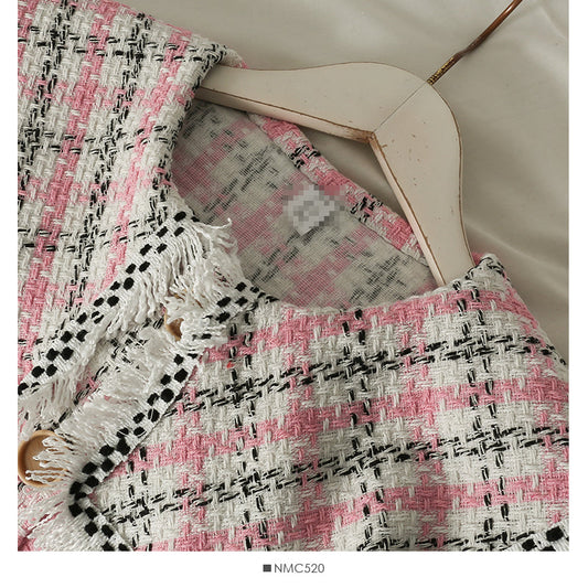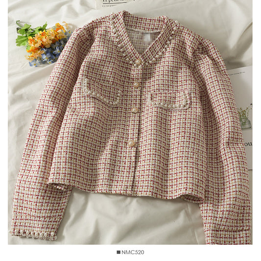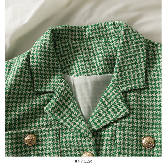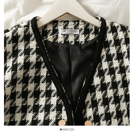 Korean retro thousand bird grid short single breasted jacket female 2099
