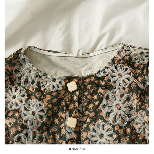 Hong Kong Vintage printed round neck single breasted cardigan top women's jacket 2115