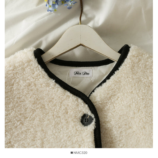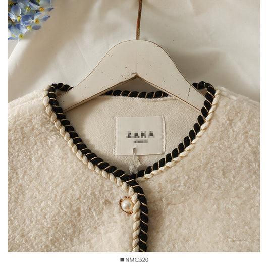 Seasonal bright silk trimmed lamb wool loose coat 2112