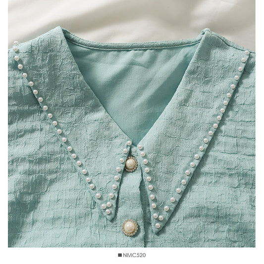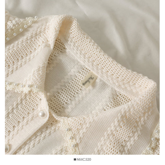 New nail bead Lapel single breasted cardigan long sleeved blouse 2101