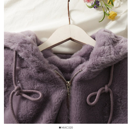 Korean loose and thin large pocket hooded Plush warm coat for women 2120