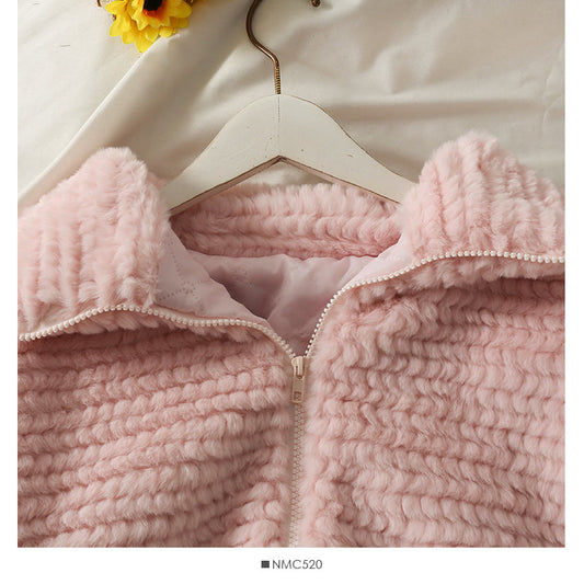 Plush thickened Lapel bubble sleeve cardigan coat 2116