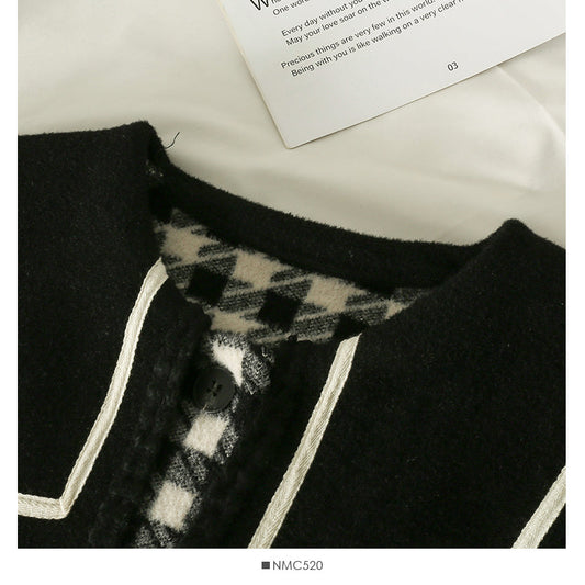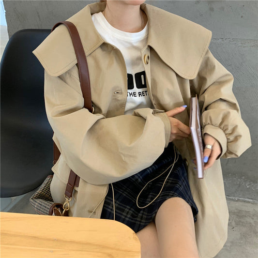 Contrast stitching doll collar single breasted loose top coat 2126