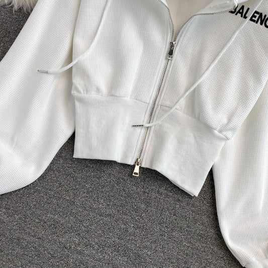 Fashionable autumn long-sleeved short jacket white hoodie 249