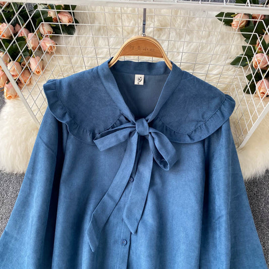 Cute lapel long sleeve top 264