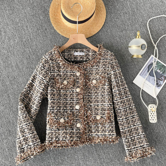 Celebrity style light luxury women's Woven coat women's tweed 1548