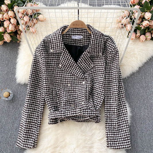 Small fragrant clothes contrast color thousand bird lattice short suit coat 1638