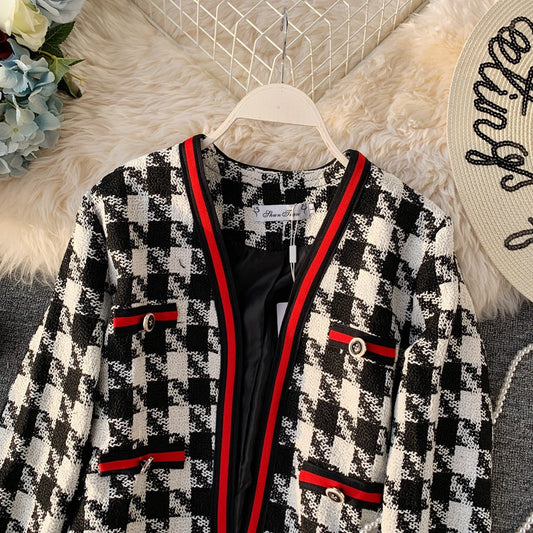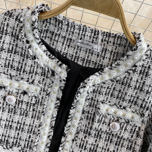 French small fragrant wind tweed coat autumn and winter celebrity temperament versatile top 1562