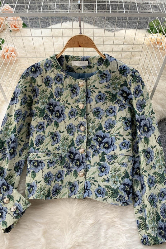 Temperament small fragrance bright silk woven single breasted long sleeved coat 1634