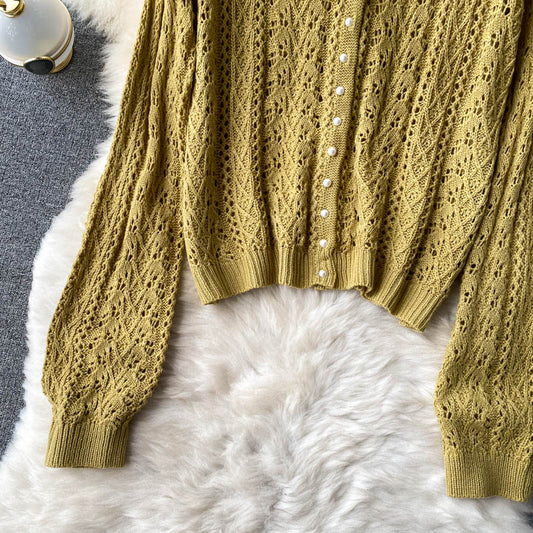 Knitted cardigan thin hook flower hollow out long sleeve 1583
