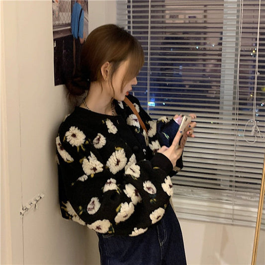 Preppy style, versatile short sweater jacket, cardigan knit top 1452