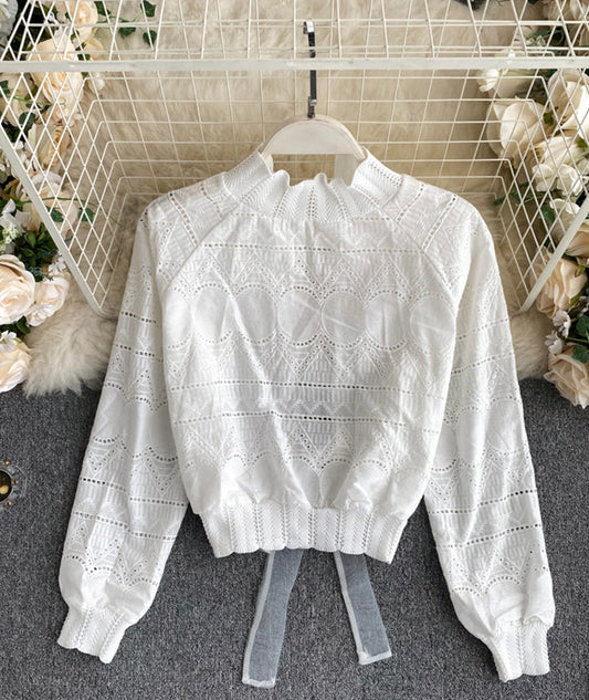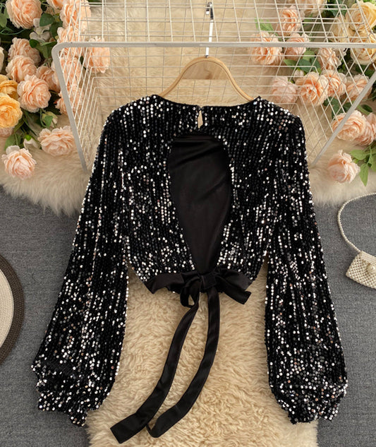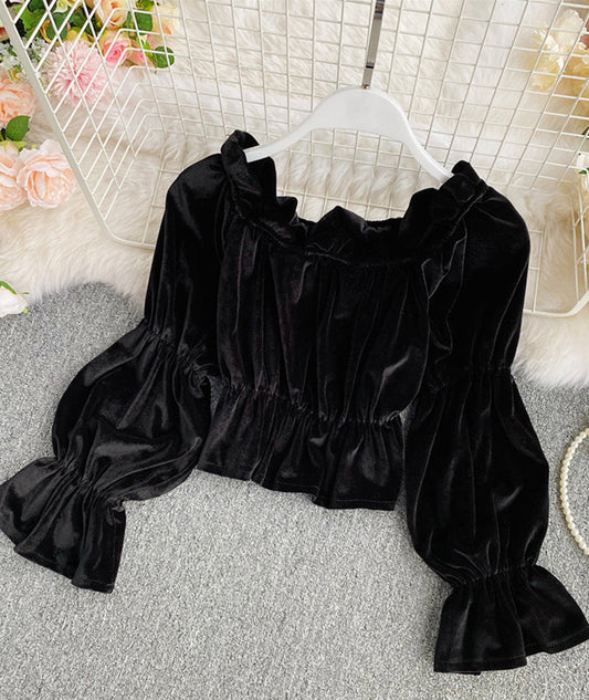 Romantic back tie one-piece top long sleeve velvet tops 387