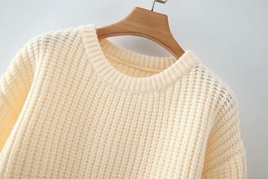 Autumn winter new fund languid loose round neck bubble sleeve knit sweater 1362
