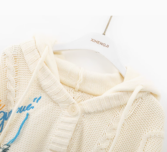 Leopard Print Embroidery Long Sleeve Thick Knitted Cardigan ED0454