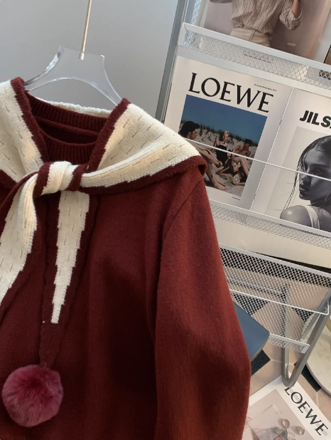 Christmas style beaded red doll collar sweater ED0796