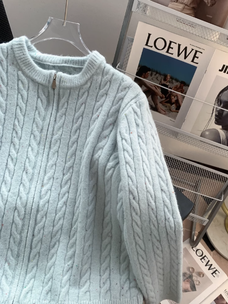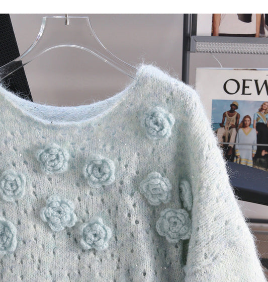 Blue Sequined 3D Flower Knitted Sweater ED0919