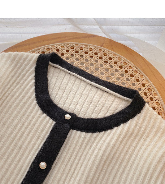 A trendy long sleeved shirt with small foreign style knitted stripe stitching 6331