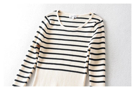U-neck striped long sleeve slim fitting bottomed sweater for women 7736