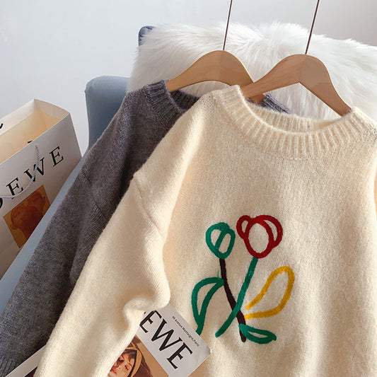 Versatile Korean jacquard loose knit sweater 7411