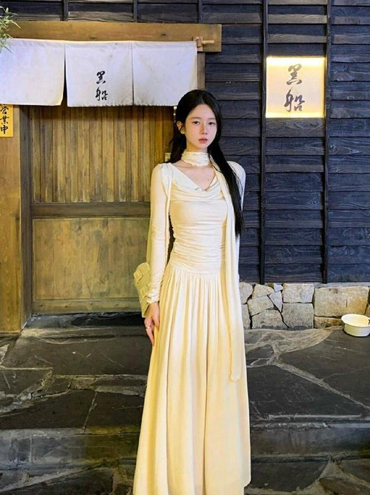 A-line Swing Neck Long Sleeve Scarf Knitted Dress ED0310