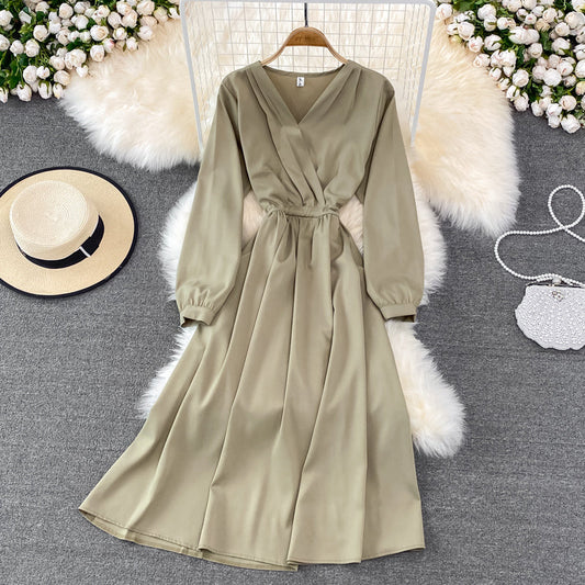 Simple V Neck Long Sleeve Dress Fashion Dress ED0373