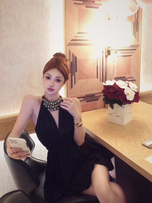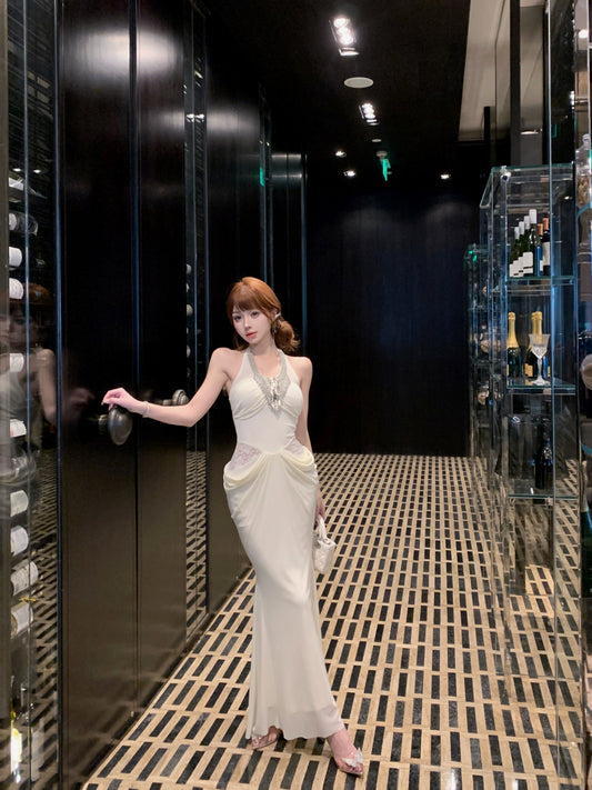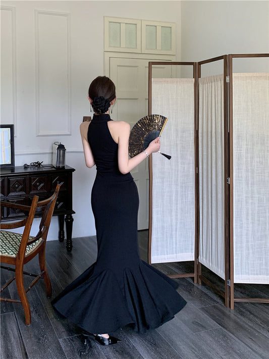 New Chinese style improved cheongsam buttoned halter neck fishtail skirt ED0806