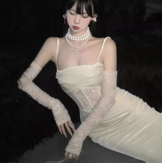 Two-piece sweet lace stitching suspender dress (Skirt + Pants) ED0511