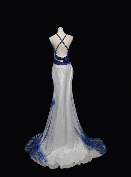 Vintage Gradient Blue Halter Neck Sheath Long Prom Dresses Elegant Party Dress ED02335