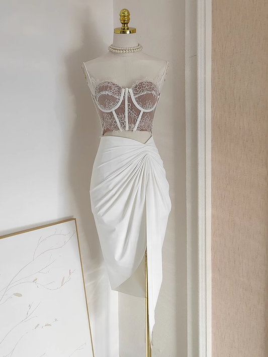 Sexy High Low Square Neckline White Lace Ruffles Dress Beach Holiday Dresses SD286