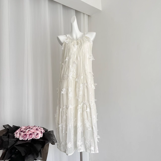 Sexy Sheath Spaghetti Straps Champagne Butterfly Print Lace Casual Dress Beach Holiday Dresses SD315