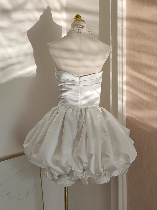 Sexy Ball Gown Sweetheart White Satin Vacation Dresses Short Birthday Outfits SD329